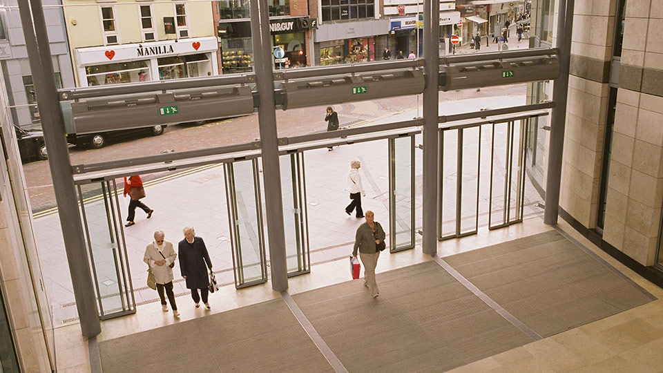 El cierre seguro por la noche va a cargo del cerrojo electromecánico. Velocidad de apertura y cierre ajustables Funciones: adaptación automática al tránsito de paso, inversión automática al detectar un obstáculo, apertura tipo farmacia, función de esclusa, función paraviento, apertura o cierre automáticos en caso de corte de corriente