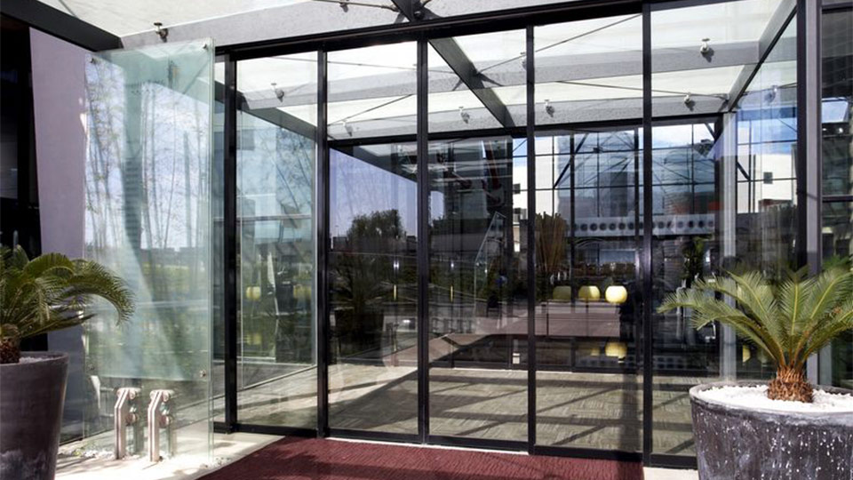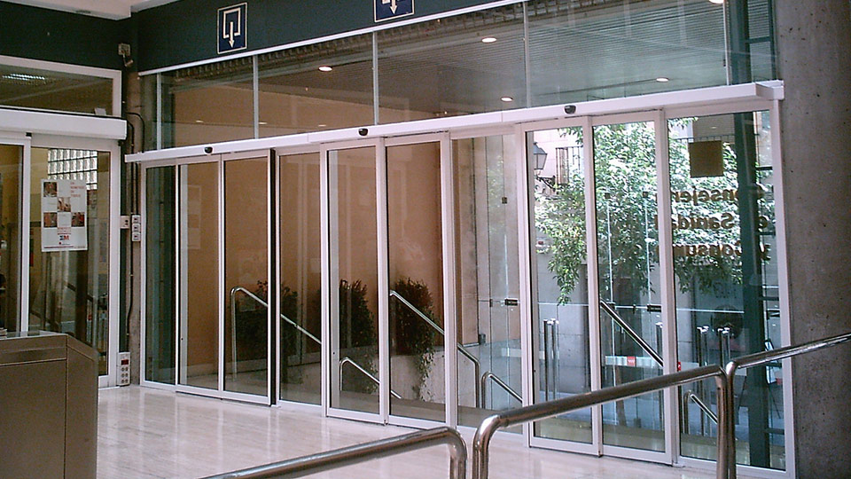 Los automatismos GEZE para puertas corredizas telescópicas son idóneos para fachadas de vidrio estrechas. Estas puertas corredizas se emplean en puertas de 2 ó 4 hojas y permiten un ancho de apertura de hasta 3600mm. Las puertas corredizas telescópicas son también apropiadas para fachadas ya existentes donde son una excelente elección para renovaciones y reestructuraciones de edificios.